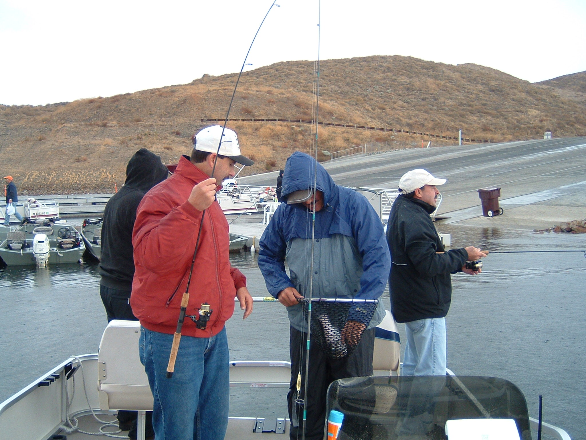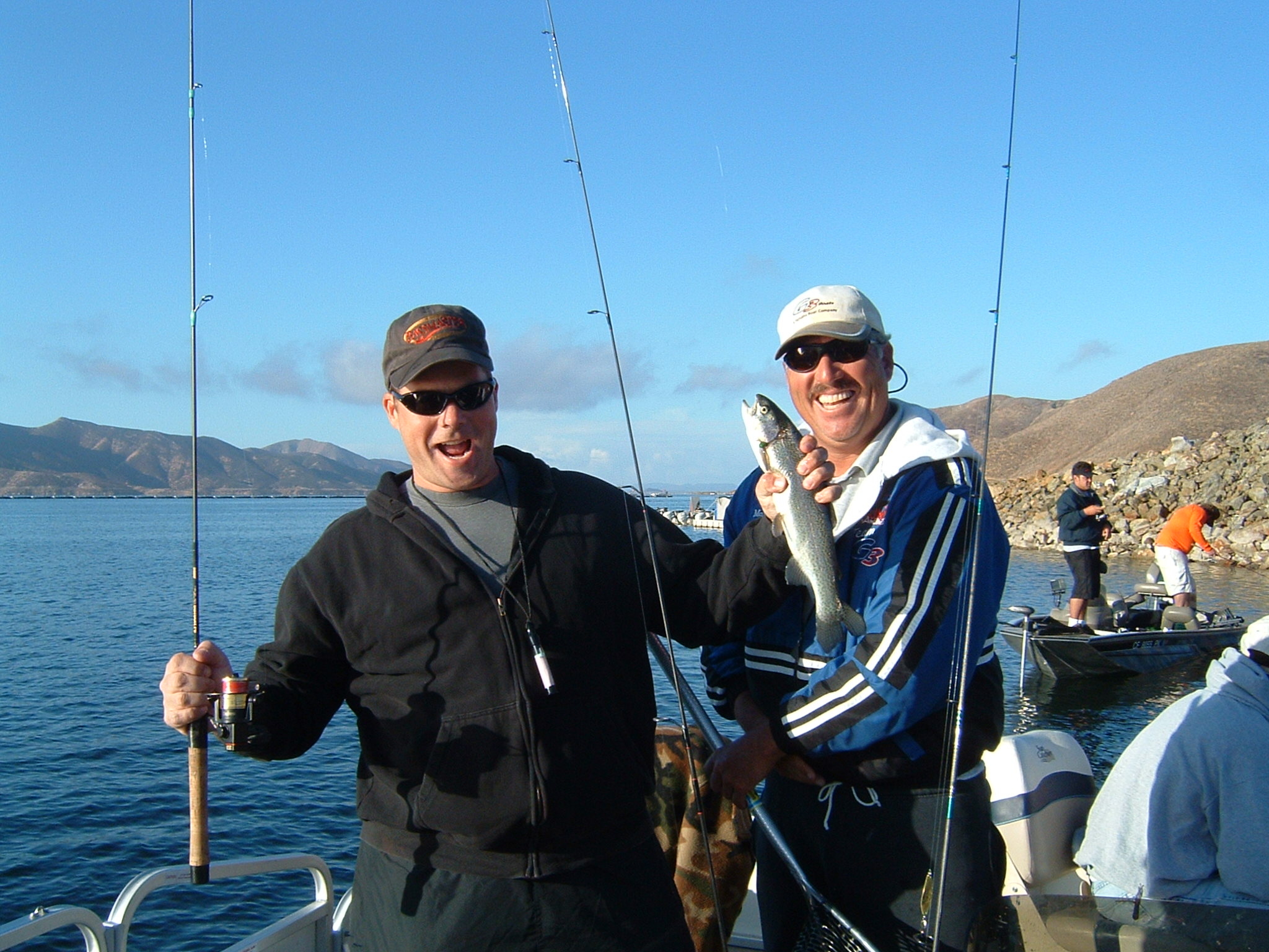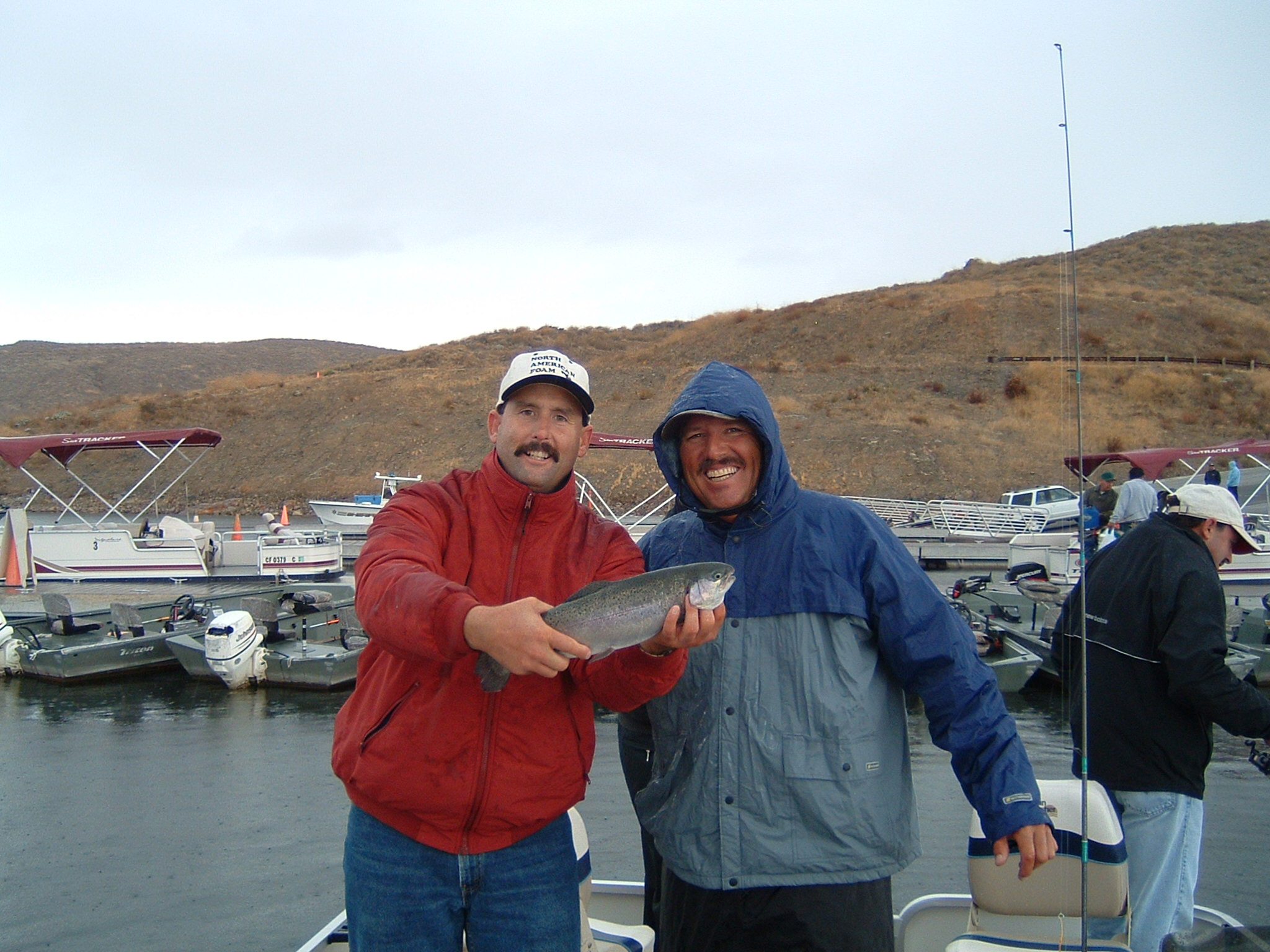 This was fun Ron hooked us up with a guide that fishes Diamond Valley Lake. He showed us how to catch trout on 2# line. We all did well but Bud, he was using something called a Tobber. Bud did catch a fish it just wasn't that big.