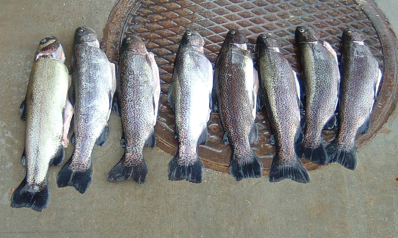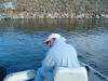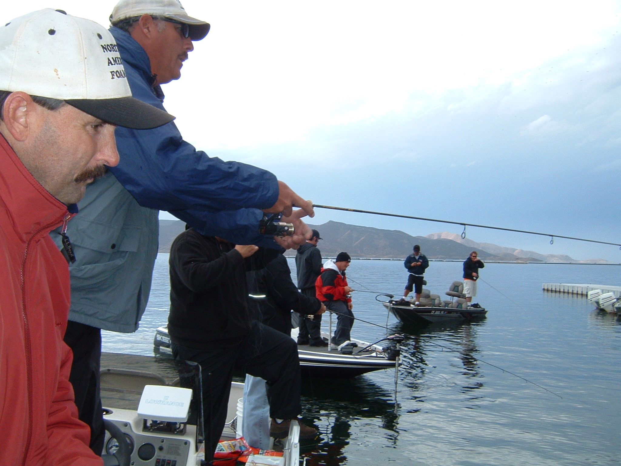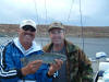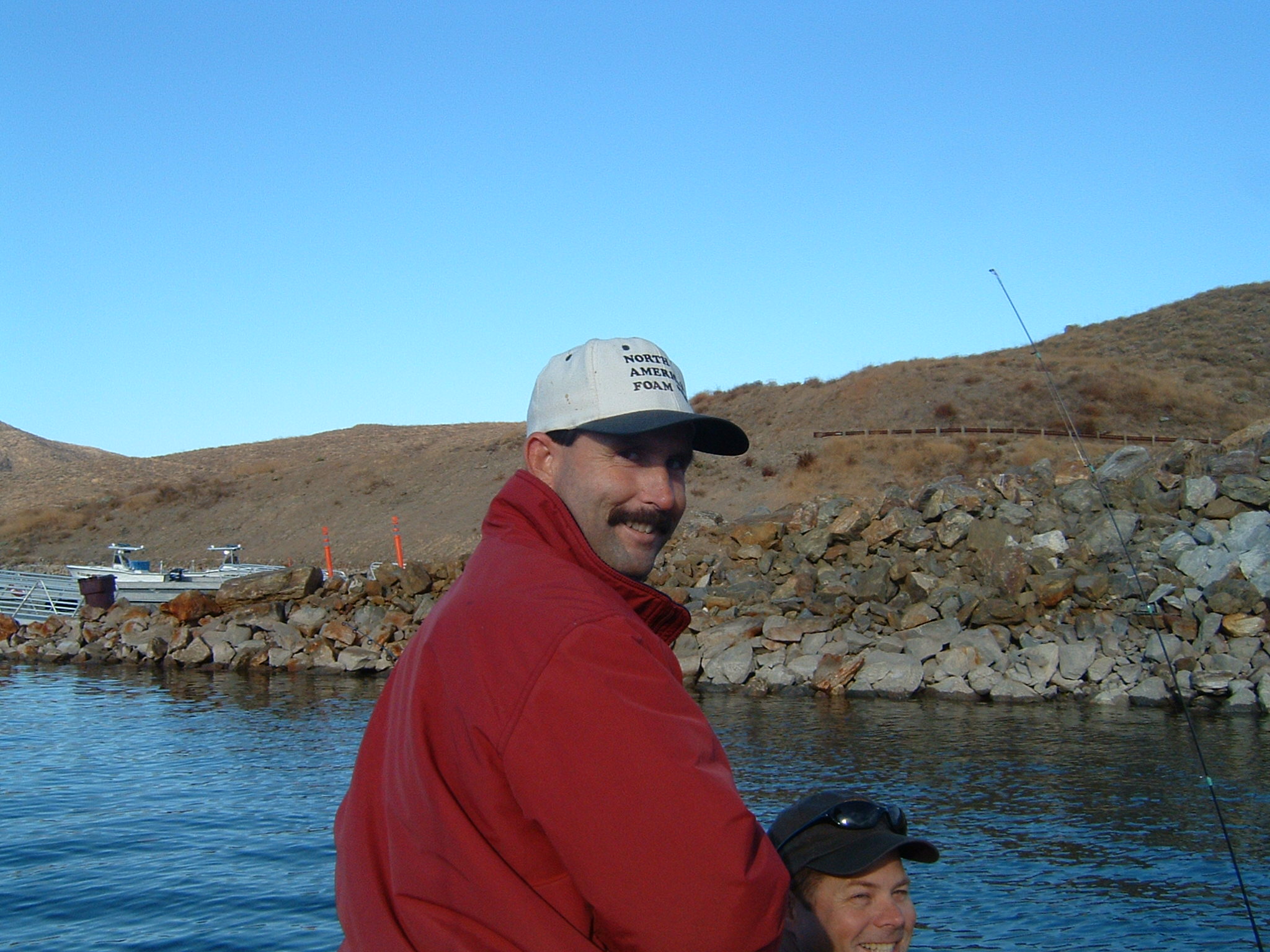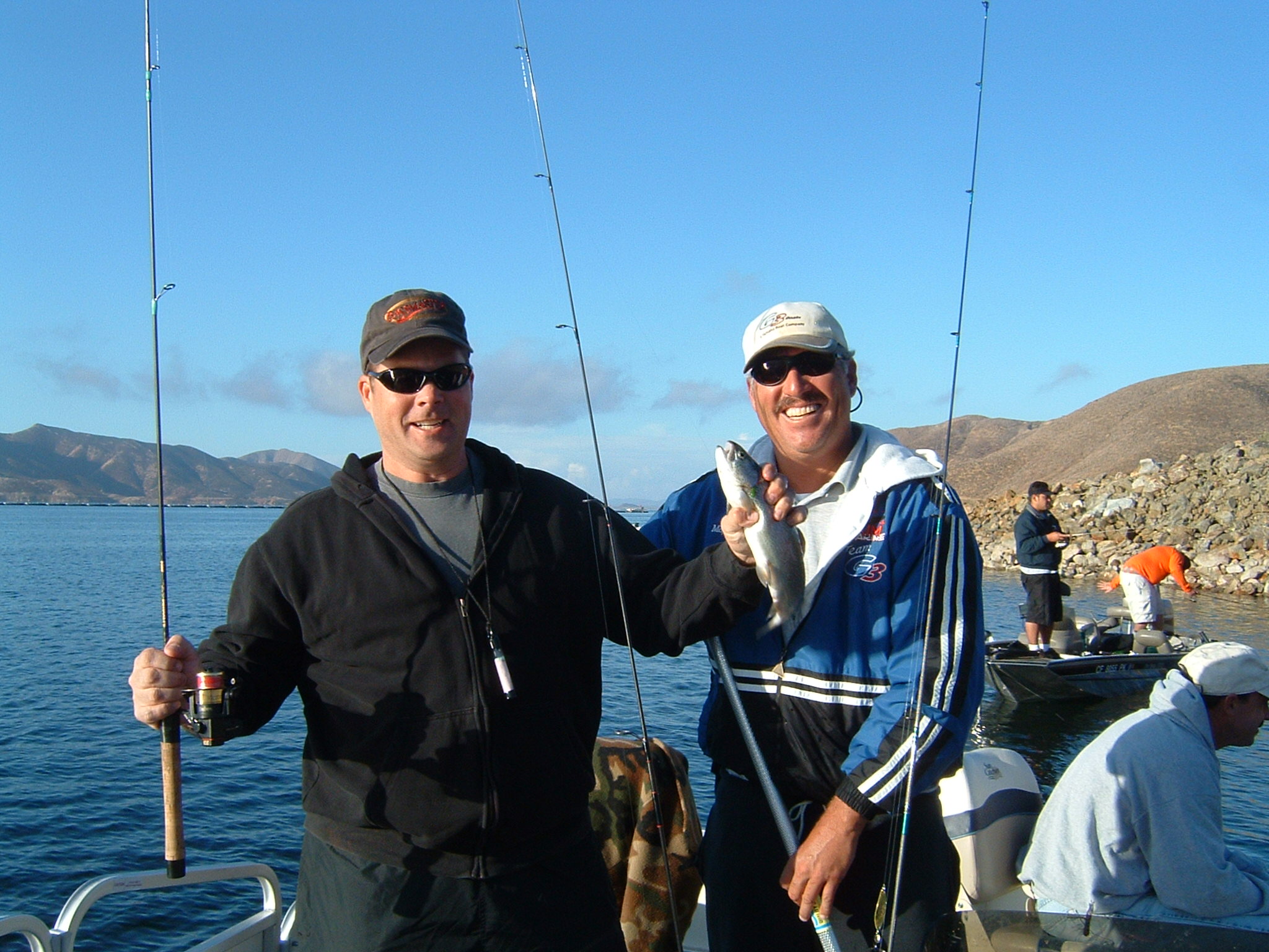 This was fun Ron hooked us up with a guide that fishes Diamond Valley Lake. He showed us how to catch trout on 2# line. We all did well but Bud, he was using something called a Tobber. Bud did catch a fish it just wasn't that big.